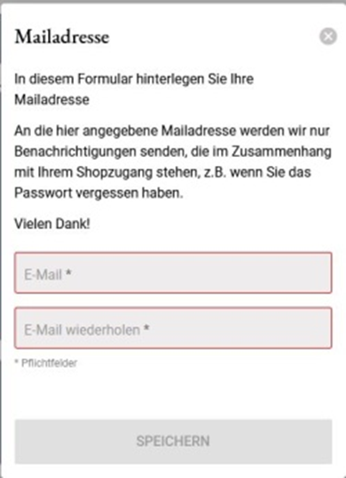 Bitte pflegen Sie im Shop Ihre aktuelle E-Mail Adresse um Ihnen in Zukunft noch mehr Schutz leisten zu können.
