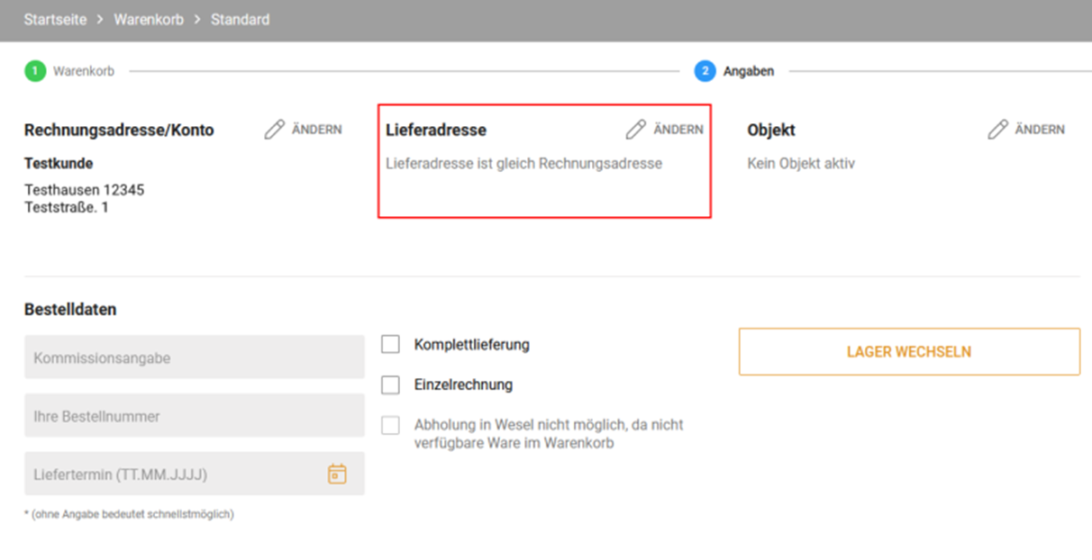 Soll die Ware an eine andere Lieferadresse geliefert werden? Kein Problem!