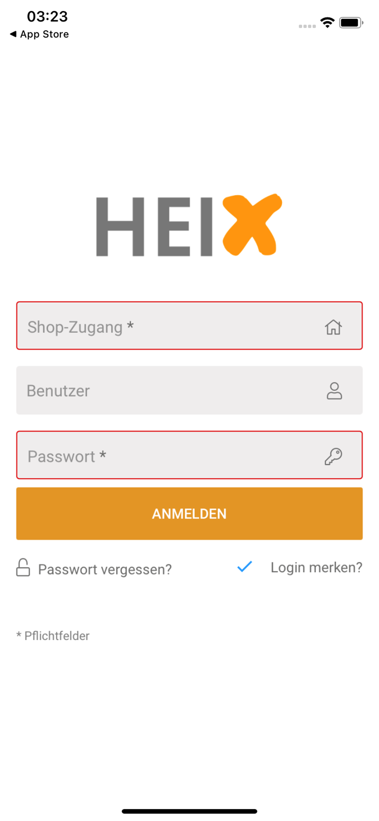 Nachdem überspringen oder durchlesen erscheint die Anmeldemaske. Hier geben Sie wie gewohnt Ihre HEIXonline Zugangsdaten ein. Sollten Sie sich über einen Benutzer einloggen, dann sollte das Feld auch gefüllt sein.