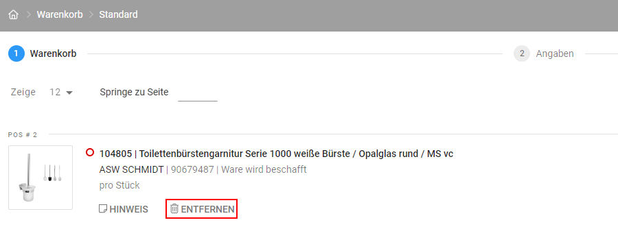 Es kann jeder Artikel innerhalb eines Warenkorbes einzeln gelöscht werden.