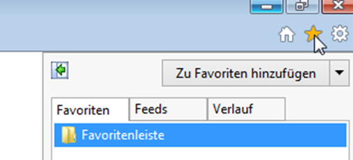 Beim Internet Explorer befindet sich ebenfalls ein "Sternchen" oben rechts neben der URL. Hier öffnet sich nach dem Klicken eine Favoritenliste, die Ihre gespeicherten Lesezeichen anzeigt und sie die Möglichkeit haben diese zu sortieren: