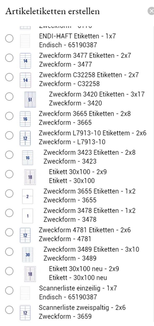 Erstellen Sie hierzu eine Merkliste mit den ausgewählten Produkten und wählen Sie über den Reiter ARTIKELETIKETTEN die Etiketten im passenden Format aus. Wenn Sie den Ausdruck nun zusammenheften und mit Ihrem Logo versehen, ist dies nach unserer Erfahrung gut als Produktunterlage für Ihre Kunden nutzbar.