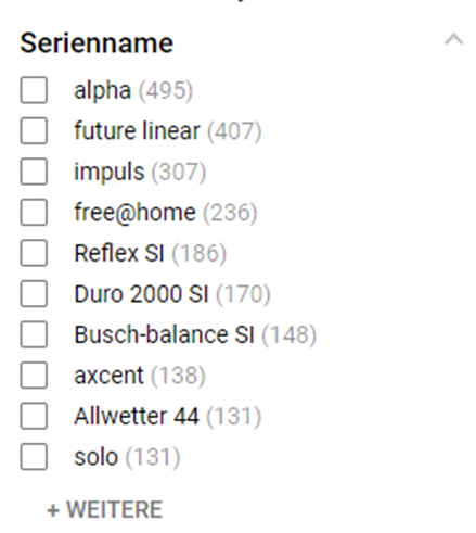 Ja, Sie können nach Produktserien suchen. Geben Sie einen Begriff in der Suchleiste ein. Anschließend können Sie die Trefferliste über die Facette auf der linken Seite nach den Seriennamen filtern.