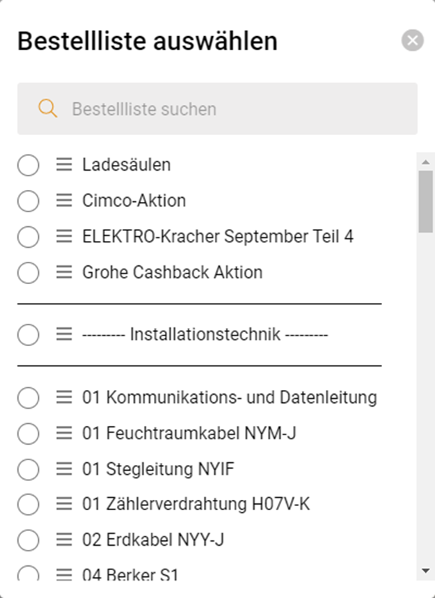 Bestelllisten sind speziell für Ihren Zugang eingerichtete Artikellisten, die Konditionen der aktuellen Aktionen enthalten. Von hier aus können Sie ganz bequem, die für Sie ausgewählten Artikel bestellen.